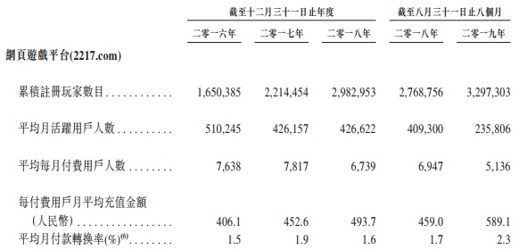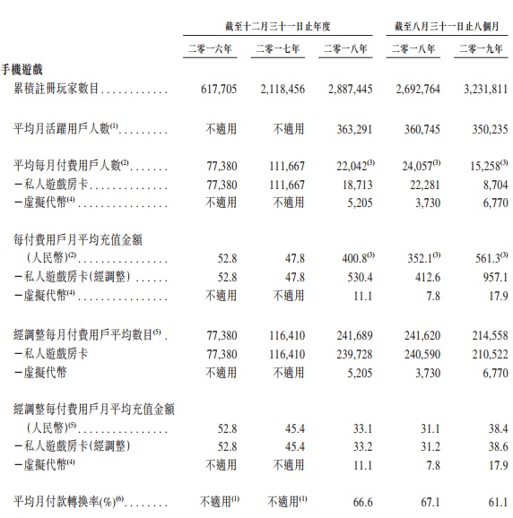 公司手机游戏的累计注册玩家由截至2016年12月31日的约617,705名,增加至截至2019年8月31日的约3,231,811名。同时,公司的网页游戏的累计注册玩家由约1,650,385名增加至约3,297,303名。