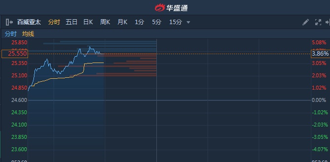智通财经APP获悉,百威亚太(01876)盘中现3宗大手成交,每股作价25.275元,共涉及1133.24万股,共涉资2.86亿元。截至10时57分,涨3.86%,报价25.55港元,成交额6.921亿。