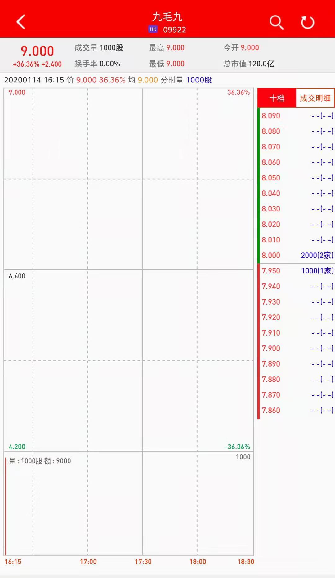 智通财经APP获悉,九毛九(09922)将于1月15日挂牌,今日暗盘大幅高开,截止到发稿,利弗莫尔证券暗盘交易显示其报价9.0港元,较招股价6.6港元涨36.36%。每手1000股,不计手续费,每手赚2400港元。