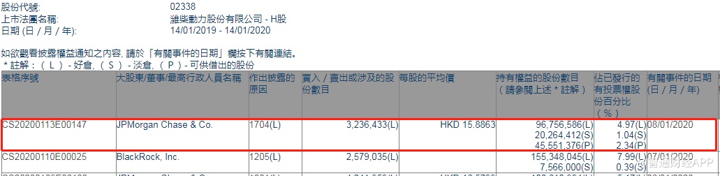 智通财经APP获悉,联交所最新资料显示,潍柴动力(02338)被摩根大通减持约323.64万股,每股作价15.8863港元,总金额约5141.44万港元,减持后最新持股数目约为9675.66万股,最新持股比例为4.97%。