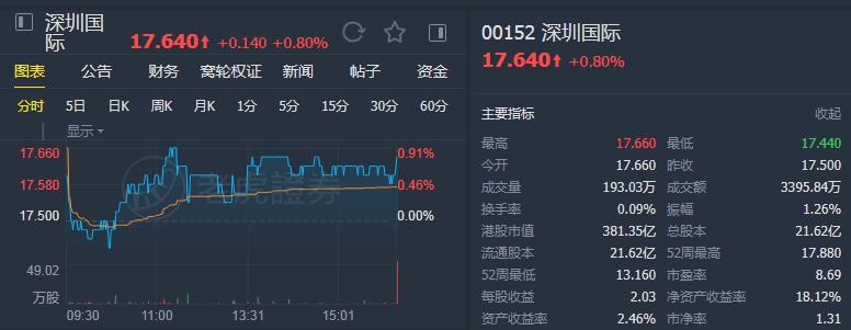 该行表示,考虑到近期人民币升势,预计去年下半年外汇因素对公司旗下深圳航空的影响将减少。花旗称,深圳国际现估值相当于今年度预测市盈率约8倍,预测核心市盈率约20倍,股息收益率约7%,认为现时估值在即将来临的减息周期中具吸引力。
