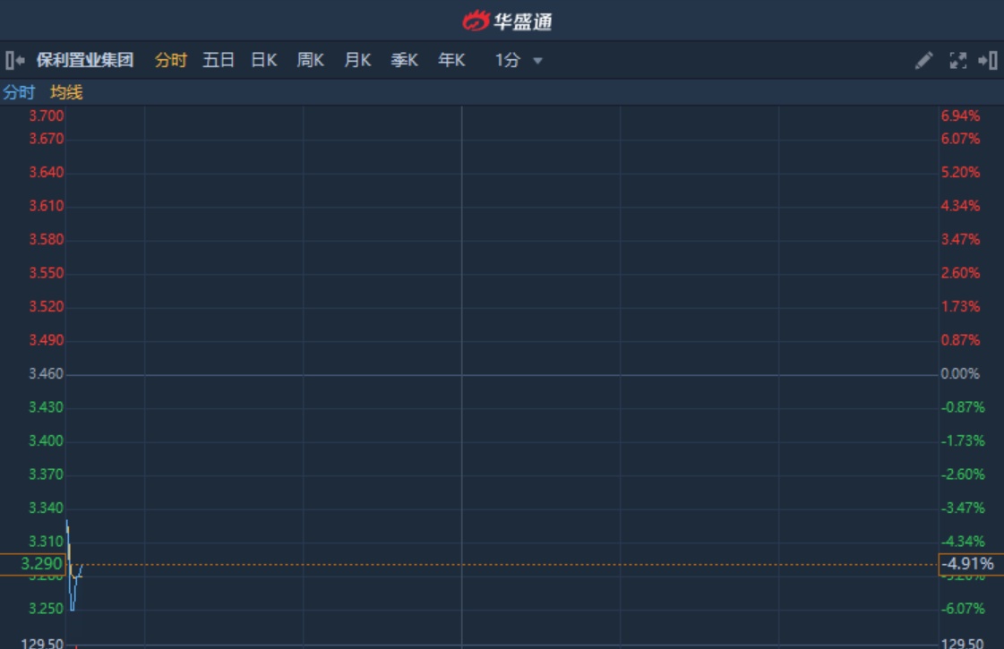 智通财经APP获悉,保利置业集团(00119)昨日盘后发布公告,预期2019年净利润同比增长不少于60%。但该股今日早盘曾跳空低开逾6%,截至9时35分,跌4.91%,报价3.29港元,成交额1268万。