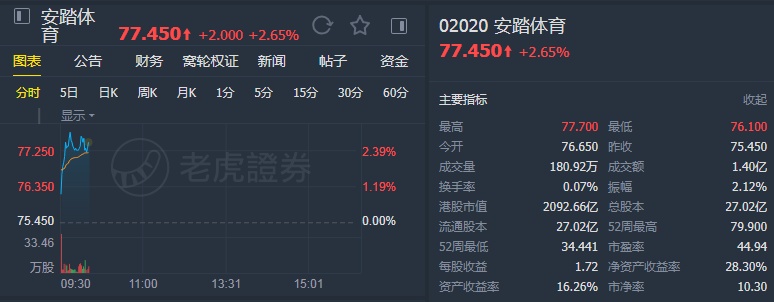 智通财经APP获悉,高盛发布报告称,上调安踏体育(02020)目标价,由84.6港元升至88.2港元,维持“买入”评级。