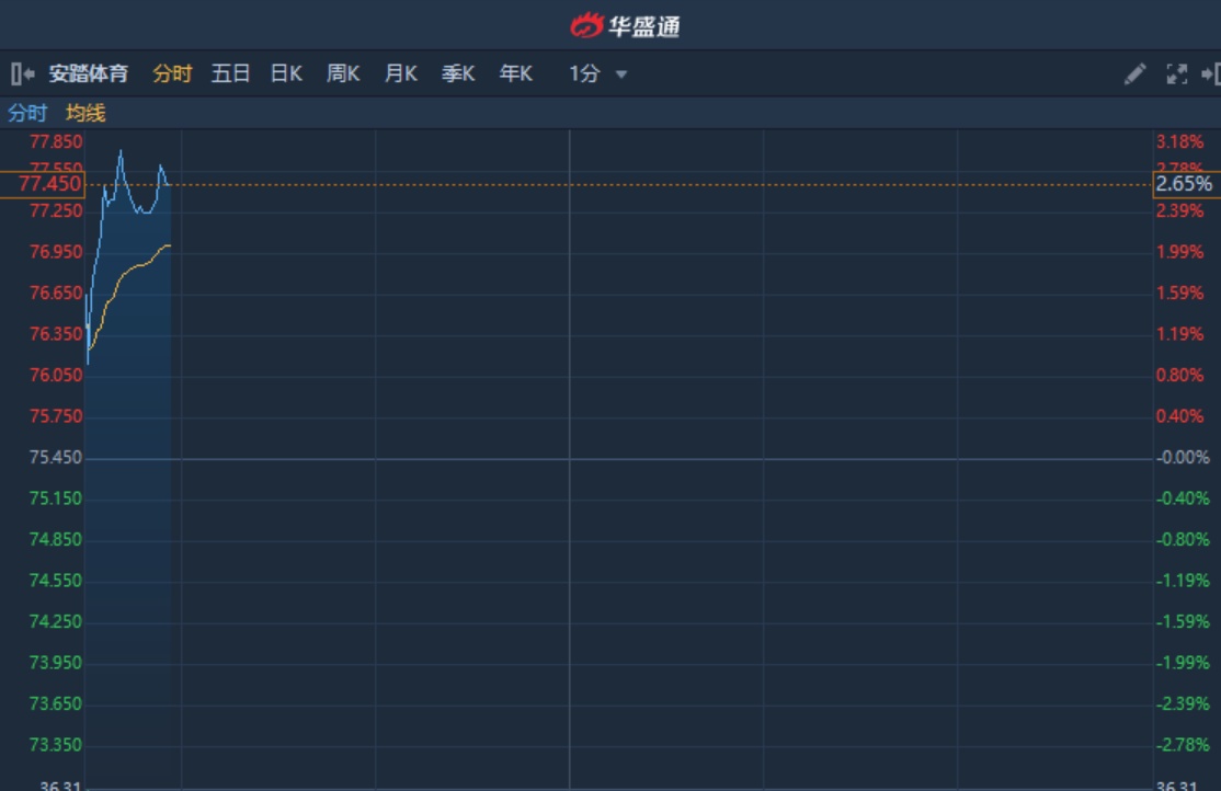 智通财经APP获悉,安踏体育(02020)拟发行可转债募集10亿欧元,获各大投行和机构看好,并积极好评。该股早盘延续升势,截至9时55分,涨2.65%,报价77.45港元,成交额1.175亿。