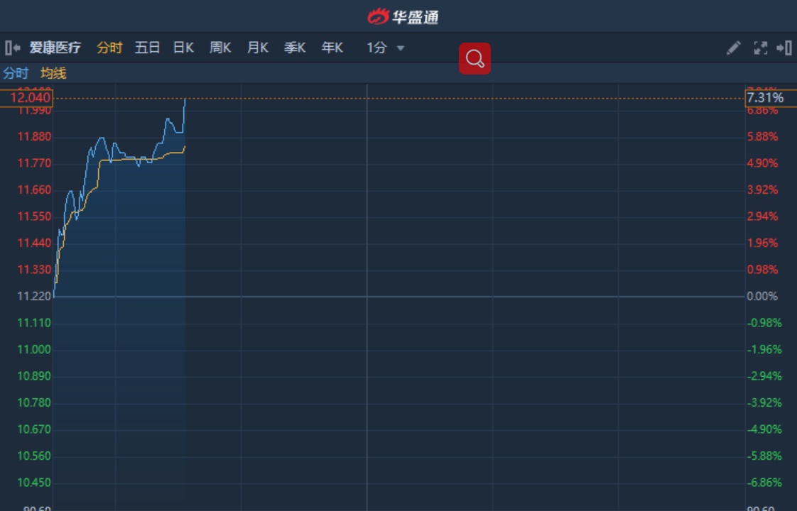 智通财经APP获悉,爱康医疗(01789)近期连续获市场资金热捧,今日盘中涨势延续,高见12.02港元,再度刷新历史新高,截至10时35分,涨7.31%,报价12.04港元,成交额3999万。