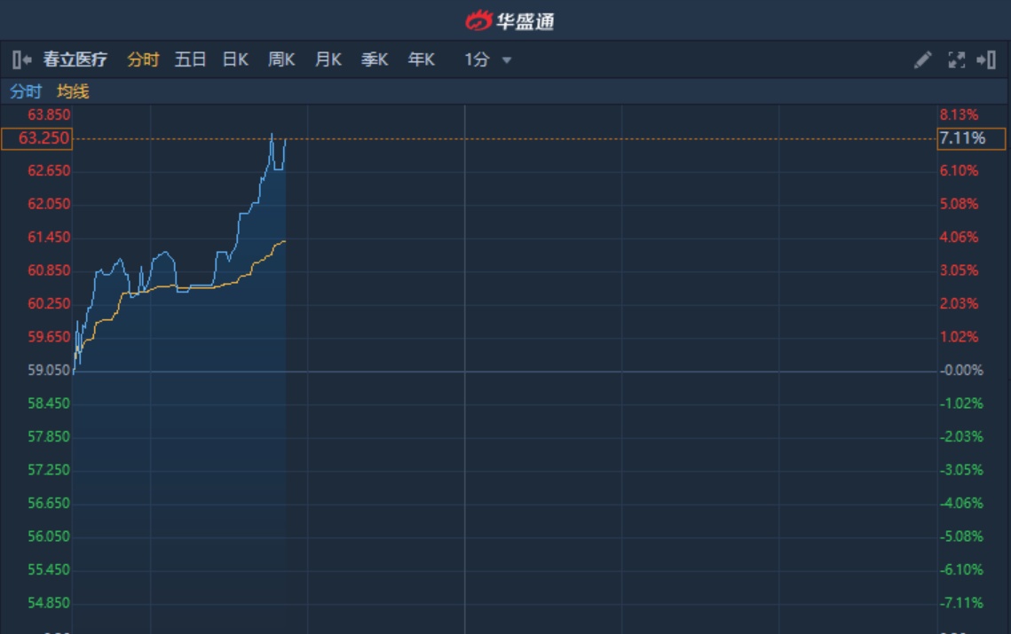 智通财经APP获悉,春立医疗(01858)获资金热捧,近期股价连续破顶,月初至今累计涨幅近40%。截至10时50分,涨7.11%,报价63.25港元,成交额1257万。值得注意的是,该股盘中高见63.5港元,续创历史新高。
