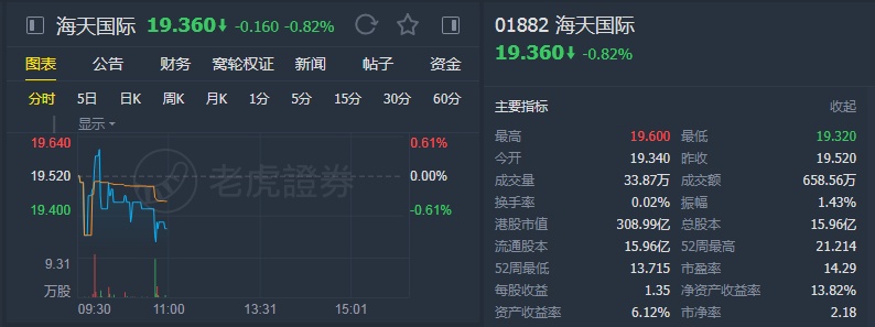 智通财经APP获悉,花旗发布报告称,重申海天国际(01882)“买入”评级,目标价由19港元升至22.6港元。