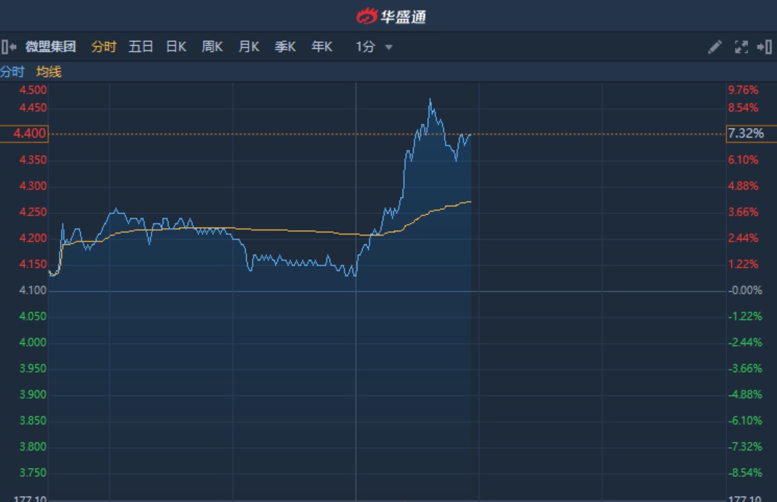 智通财经APP获悉,微盟集团(02013)获中金看高至6.9港元,予其“推荐”评级。该股午后放量急升逾7%,高见4.47港元,创近四个月新高。截至13时55分,涨7.32%,报价4.4港元,成交额1.716亿。