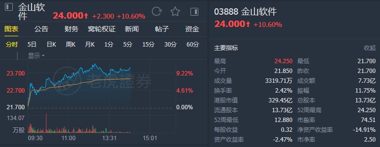 智通财经APP获悉,麦格理发布报告称,首予金山软件(03888)“跑赢大市”评级,目标价32港元,此相当综合方式作估值,相当预测今年市盈率33倍,估计旗下云业务及办公室软件业务今年可出现强劲增长,主要受益于公司市场领先地位及客户快速适应所致,该股目前股价较每股资产净值折让高达51%。