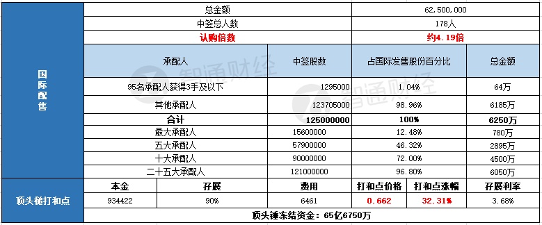 国际配售申购人数未披露,认购倍数约4.19倍。
