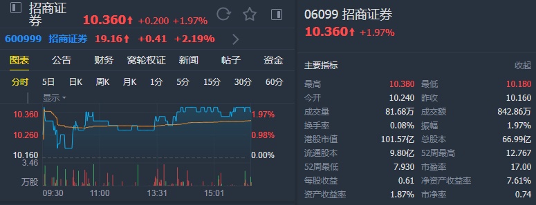 智通财经APP获悉,大和发布报告称,招商证券(06099)的经纪及资产管理业务将略有改善。该行将招商证券目标价上调31.25%,由原来的8港元上调至10.5港元,评级也由“逊于大市”升至“持有”。