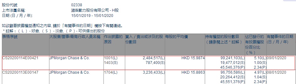 智通财经APP获悉,联交所最新资料显示,2020年1月9日潍柴动力(02338)被摩根大通增持约248.45万股,每股作价15.9874港元,总金额约3972.10万港元,增持后最新持股数目约为9924.11万股,最新持股比例为5.1%。