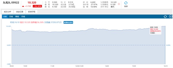 此前一天,九毛九公布招股结果显示,集团拟发行3.334亿股,以每股6.6港元上限定价,募集资金净额20.756亿港元,中签率25%。香港公开发售部分已获非常大幅超额认购,超购636.82倍;国际发售部分也获大幅超额认购。基石投资者包括BlackRock Funds、China Alpha.、WT Investment Management以及GSC Fund One及 Vision Fund 1等,合计认购6478.5万股。