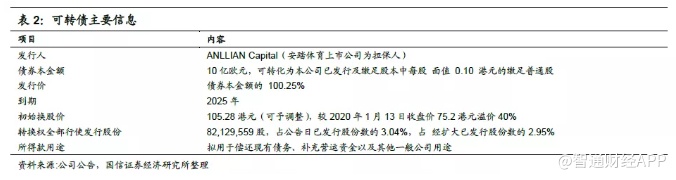 2020年1月14日,公司公告,于2020年1月13日(交易时段后),公司发行于2025年到期的10亿欧元零息有担保可换股债券。初始换股价每股105.28港元,假设全部换股,相当于公司公告日已发行股份的3.04%。