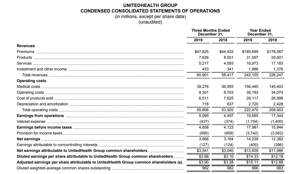 智通财经APP获悉,美东时间1月15日美股盘前,联合健康(UNH.US)公布了2019年第四季度及全年业绩报告,报告显示,联合健康全年实现营收2420亿美元,同比增长7%。