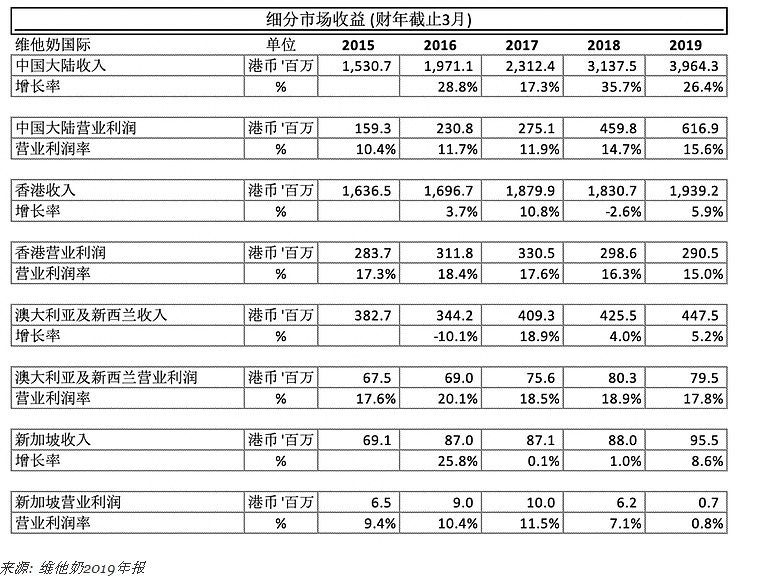 然而,在利润率方面,维他奶在各地区的表现似乎都异常突出。