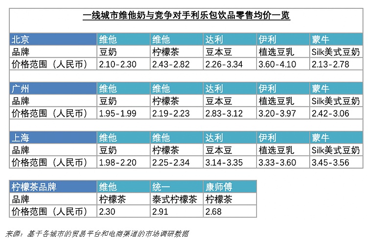 举例来说,我们了解到维他奶自2013年初进入中国北方的家乐福超市后,由于缺乏营销策略和分销网络,其产品已从许多门店退出。究其原因,很大程度上是由于北方市场的消费习惯造成的。当地的消费者已常年习惯喝牛奶,因而维他豆奶等替代品无法与之竞争,再加上维他奶在当地投入用来对消费者进行教育和市场推广的资源也少。北方的的其他主要销售渠道,包括大润发和沃尔玛超市的情况,亦是如此。