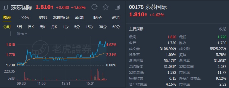 智通财经APP获悉,富瑞发布报告称,莎莎(00178)2020年第三季度在香港及澳门的同店销售同比下跌34.7%,销售则下跌35.2%,受惠于农历新年的影响,一月份香港同店销售跌幅或有所收窄。该行表示,维持其“持有”投资评级,目标价1.89港元。