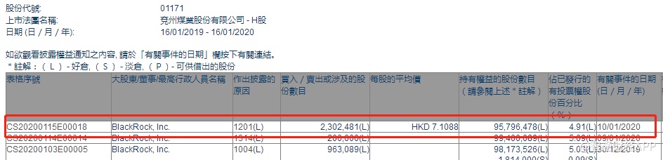 智通财经APP获悉,联交所最新资料显示,1月10日,贝莱德减持兖州煤业(01171)230.25万股,每股作价7.1088港元,涉及总金额约为1636.80万港元。减持后最新持股数目约为9579.65万股,最新持股比例为4.91%。