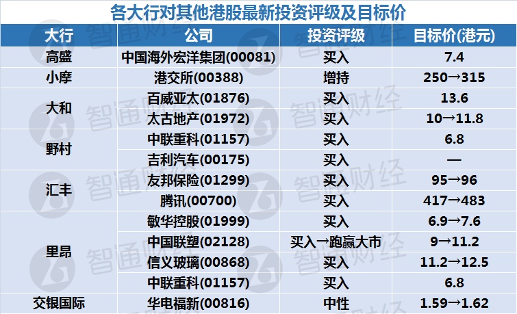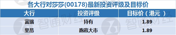 四、各大行对莎莎(00178)最新投资评级及目标价