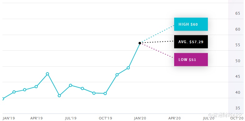JMP证券公司的分析师认为其股价很可能上涨,并已将其股票评级下调至中性。 DA Davidson首次予其“买入”评级和62美元的目标价。