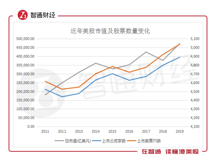 2019年,美股总市值达47.18万亿美元,创下历史新高。其中,2019年较去年同期实现增速25.12%,为2012年以来最好增速表现。