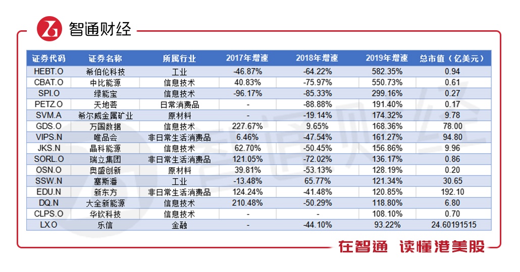 除此之外,万国数据(GDS.US)、好未来(TAL.US)实现连续三年持续上涨。除此之外,百济神州(BGNE.US)、万国数据(GDS.US)、海亮教育(HLG.US)为2016-2018年中概股中,市值涨幅超过500%的标的。