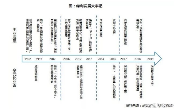 保利发展(00119)从成立至今已经过了27年,从1992年保利集团受“南巡讲话”激励在广州成立房地产公司,到1997年确立精品思维快速发展,再到2006年正式上市之后一直稳定在龙头房企之列,至今已成为了行业内规模最大的央企房企。仔细梳理保利的发展历程,我们将其划分为四大阶段,基本可以概括企业的发展脉络。