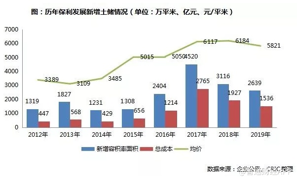 规模的发展离不开土地的投资,2017-2018年期间保利拿地快速增长,其中2017年共新增土储4520万平米,成为历年高峰,一方面是由于保利完成中航旗下11个项目的收购,新增建面近538万平方米;另一方面也是因为从2017年开始保利发展进一步加大了合作力度,2017年新增土地权益建面占比约为65%,同比下降6个百分点,2018年进一步下降至61%。新增拿地的大幅增长,也助推了保利发展近年来销售规模的快速提升,近三年的复合增长率达38%。 2019年年初由于行业资金受到社会融资规模增加及信贷季节性宽松因素的影响,资金面略有反弹,从而助推土地市场的再度升温,保利发展在此阶段避开过热市场放缓了投资力度,上半年新增土储计容面积为826万平方米,总成本533亿元,分别同比下降45%和50%。但至2019年6月,受房地产融资和信托资金收紧等严控,土地市场普遍回归理性。在此背景下,保利发展下半年相对加强了布局力度,截止2019年共新增计容面积2639万平方米,总成本1536亿元,但是与过去两年相比,拿地规模减少,或对其后续增长速度有所影响。