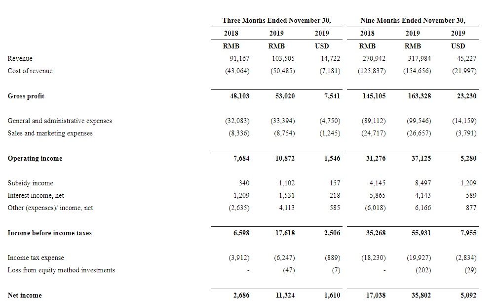 截止至2019年11月30日,四季教育的总学生数量达67714,同比增长47.7%。学习中心数量达55个。公司拥有现金及现金等价物为人民币5.466亿元,比截至2019年2月28日的人民币4.396亿元增长28.4%。