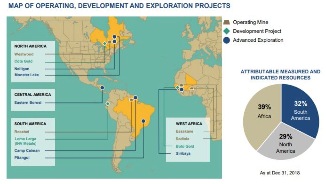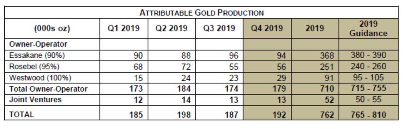 IAMGold目前在全球有3座运营中金矿,分别位于加拿大(Westwood,100%)、苏里南(Rosebel,95%)和布基纳法索(Essakane,90%)。2019年全年生产黄金76.2万盎司,略低于此前的预期值,平均AISC成本约为1130美元/盎司。