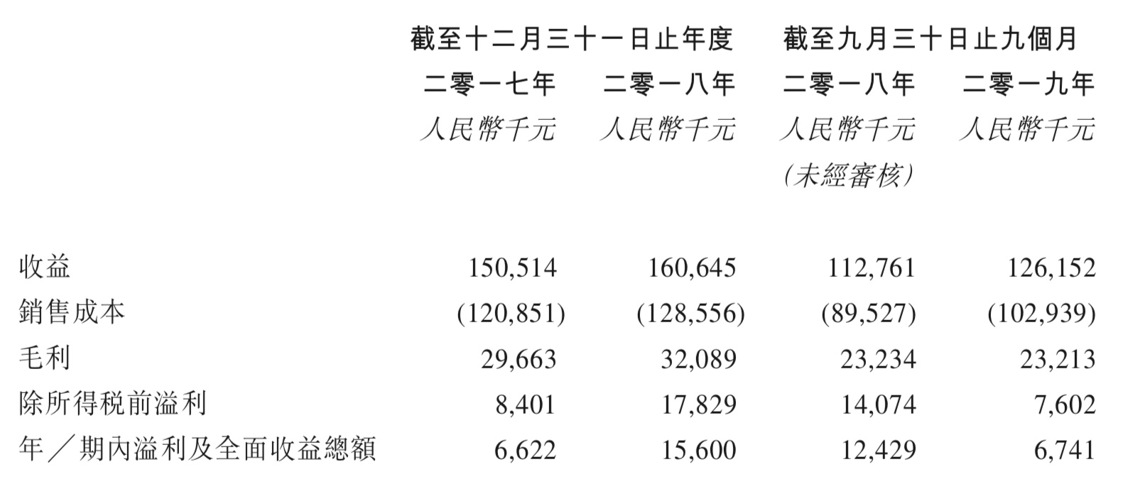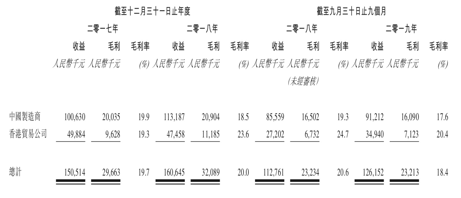 其毛利率由2017年的19.7%进一步增至2018年的20%,于截至2019年9月30日录得毛利率18.4%。