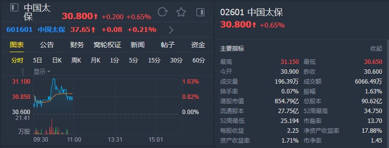 智通财经APP获悉,野村发布报告称,中国太保(02601)将在2020年度的开门红预售中,出现双位数增长。因为公司公布的主要产品,其保证年回报率达3.5%,而2018及2019年当时的利率则为2.5%,相信公司将会继续专注于高质量业务发展及代理方面的生产力提升。该行表示,将中国太保H股的目标价上调2.85%,由原来的38.21港元升至39.3港元,维持“买入”评级。