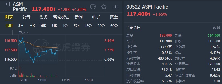 智通财经APP获悉,花旗发布报告称,将ASM太平洋(00522)2020年盈利预测上调5%,目标价由125港元升至156港元,重申“买入”评级,认为半导体市场将受惠5G升级周期及内地方面的资本开支提升而增长。