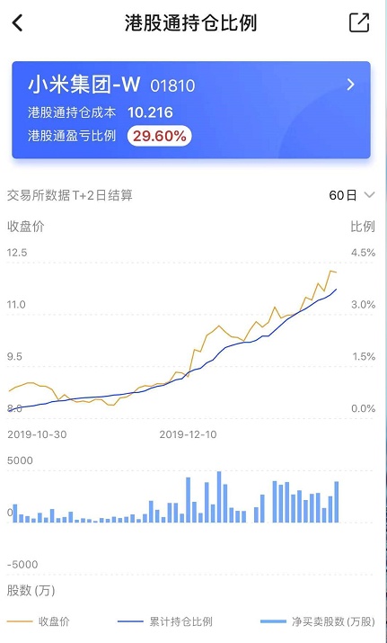 (去年12月开始,港股通南下资金加大对小米股票的净买入 数据来源:智通财经APP)