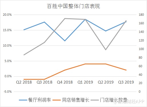 在门店表现上,公司同店销售呈微幅增长趋势。截至2019年三季度,公司整体同店销售增长达2%,餐厅利润率达17.7%,门店增长则达166家。其中,同店销售增长低于分析师预期的2.3%。