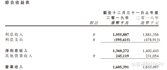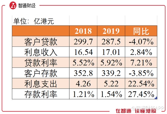 利息收入主要来自于客户贷款和应收款项,主要利息支出是客户存款,但是据智通财经APP测算,2019年贷款利率和存款利率分别约为5.92%及1.54%,而2018年同期分别为5.52%及1.21%,2019年利率都有不同程度提高,息差(贷款利率-存款利率)由4.31%增加0.07个百分点至4.38%,虽然增幅不是很明显,但是为何息差增大盈利反而下降了呢?