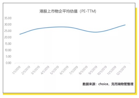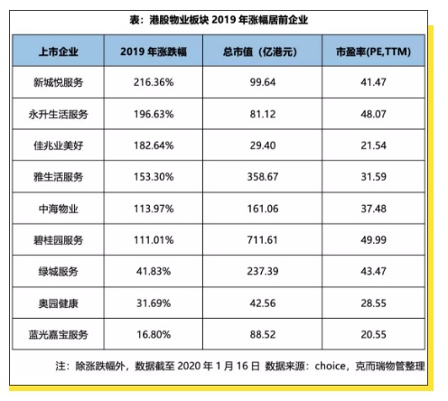 2019年,物业管理板块无疑是最大的赢家之一。在恒生指数全年涨幅9.41%的背景下,于香港上市的20家内地物业股取得了全年平均45.82%的涨幅。