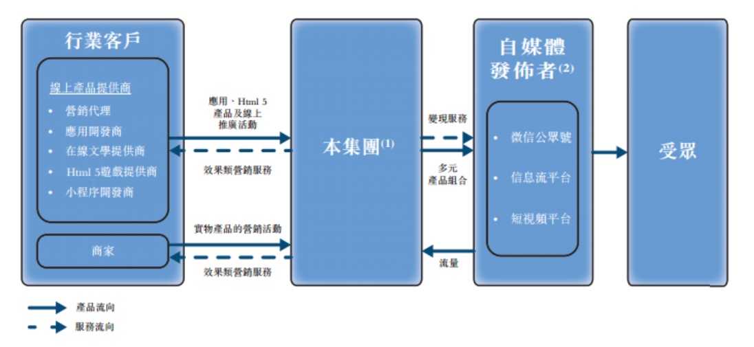 乐享互动的客户主要包括线上产品提供商及通过其效果类营销服务推广实物产品的商家。其线上产品提供商主要包括营销代理、应用开发商、在线文学提供商、Html 5游戏开发商及小程序开发商。该公司与超过110个行业客户合作,并为约2.2万个自媒体发布者及22万个用户流量进入点提供变现服务。