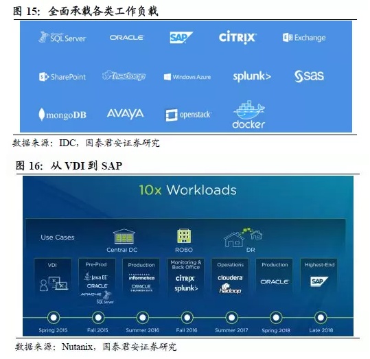 Nutanix(NTNX.US)技术源自巨头的先进理念。公司成立于2009年,总部设立在美国加州硅谷,依托来自Google/Facebook的领先新一代数据中心基础架构,并整合Google/Facebook/ VMware/Oracle等管理团队的丰富经验,Nutanix公司的愿景就是让企业的IT基础架构资源隐形,使企业能专注业务本身的IT应用及服务。在2011年11月发布了第一款计算存储融合的虚拟化基础架构产品,并被行业内很多知名公司和第三方评价公司评为极具创新性颠覆性的企业。