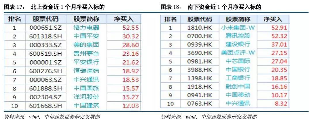2019年12月以来,沪深两市日均成交量与成交额有较为明显的上涨,1月降准以及逆回购释放部分流动性,股市资金面情绪出现小高峰。再看北上资金和南下资金,累计资金流向也均出现明显的上扬。北上资金1个月净买入以周期性公司为主,包括大消费(家电、白酒、医药)、金融(保险、银行),大基建等,均为蓝筹股;从增持数量占流通股比例来看,科技股也明显受青睐。南下资金近1个月净买入个股前十主要集中在通信、互联网、半导体、银行领域,从近1年的时期来看,对大金融领域仍是较为偏爱,主要还是银行和保险。