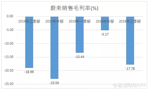 不过,甘蔗难得两头甜:将制造环节外包出去的负面效果也很明显:由于每辆车制造都还要支付给江淮一笔代工费,蔚来单车制造的可变成本这部分居高不下,而在没有规模效应的情况下,导致尽管蔚来汽车的销售均价并不低,但毛利率始终没有转正:到2019年3季度,蔚来每造一辆车仍然亏掉将近20%。