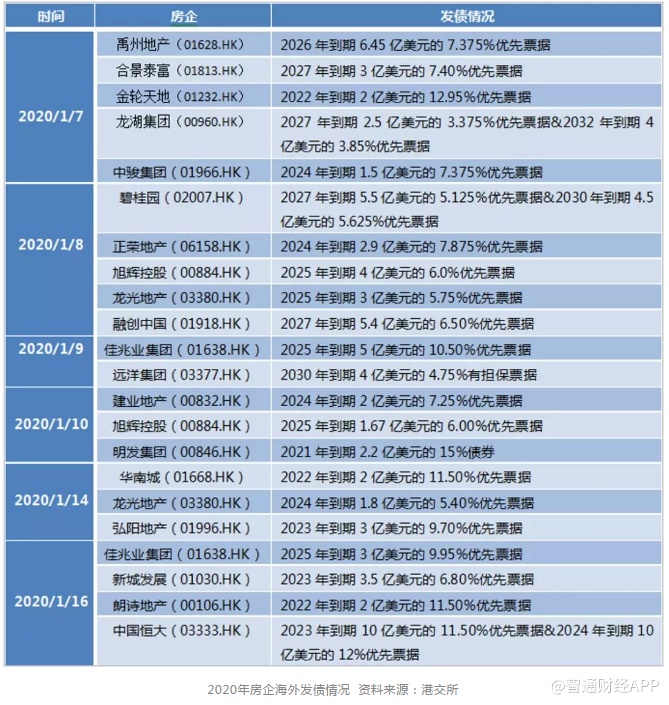 据公司情报专家《财经涂鸦》消息,继中国恒大(03333)1月16日发行两项合计20亿美元的优先票据之后,本月房企美元债融资总额已近95亿美元。同2019年全年海外融资总额的752亿美元相比,半月时间已超过去年十分之一的量。