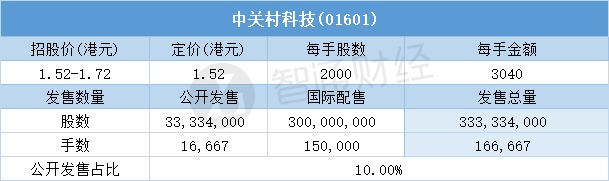 智通财经APP获悉,1月20日,中关村科技(01601)配售结束。配售招股价1.52-1.72港元,最终定价1.52港元,每手3040港元。