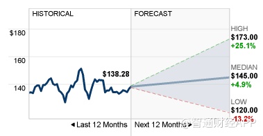 综合17位分析师的意见来看,普遍对IBM未来12个月内的股价预估中值为145美元,最高为173美元,最低为120美元。不过这一预估中值较上一次的138.31美元上涨约4.84%,总体来看,分析师对公司仍较为看好。