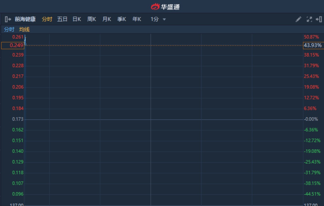 智通财经APP获悉,前海健康(00911)发盈喜,2019年股东应占利润同比预增超过5倍,早盘跳空高开,暂居涨幅榜首位。截至9时31分,涨43.93%,报价0.249港元,成交额46.11万。