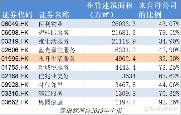 与同行业相比,永升生活服务来自母公司的管建筑面积比例非常低,在第三方拓展方面的能力处于行业前列。长期来看,强大的外拓能力使其更能抵抗依靠单一房企输送资源的周期性波动。