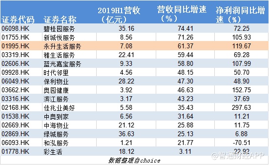 2019年上半年,永升生活服务收入同比增长61.37%,净利润同比增长119.67%,与同业对比,永升生活服务的营收规模虽然不大,但营收和净利润增速均较为突出。