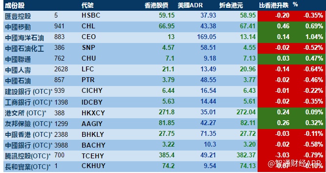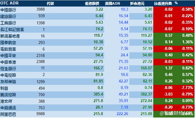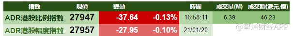智通财经APP获悉,周二美股自纪录高位回落,港股ADR指数全日偏软,按比例计算,收报27947点,跌38点。