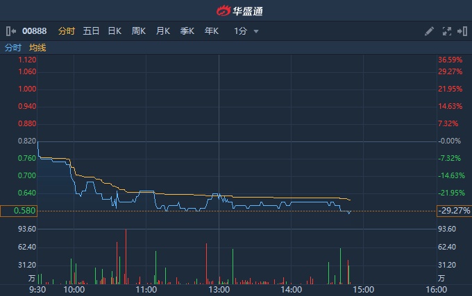 智通财经APP获悉,贝森金融(00888)今日股价持续下跌,午后跌幅扩大逾三成。公司发布公告称,确认并不知悉导致价格或成交量变动的任何原因。截至发稿,跌30.49%,报0.57港元,成交额756万港元。